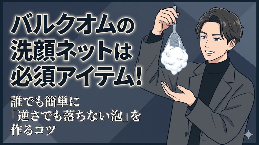 バルクオムの洗顔ネットは、単なる付属品ではなく、美肌を作るための精密な道具です。正しい手順で「逆さでも落ちない泡」を作ることで、肌への負担を減らし、清潔感のあるコンディションを維持できます。